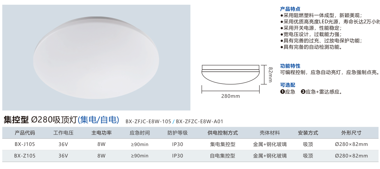 集控型 ∅280吸顶灯(集电/自电)